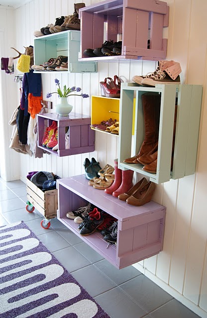 If you don't have a mudroom and are looking for a storage solution for all of your shoes, these colorful crates from Thea's Mania might be just what you are looking for. They would work great if you have an entry through your garage, or you could even install them in your garage to brighten it up and add storage.